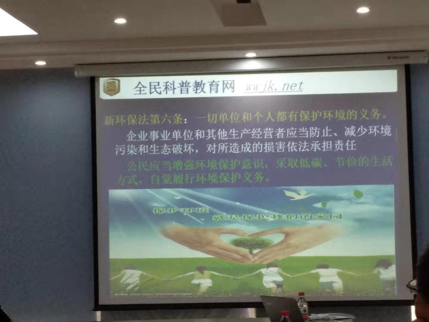 近日由全民科普教育網的老師免費為我們企業員工上了一堂生動的環境知識課程,課堂上老師用貼近生活的案例給我們員工講解了關于環境保護的很多知識。環保應從企業做起,從我們每個人做起,注意保護好身邊的生態環境。